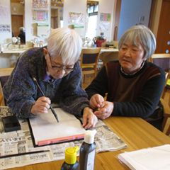 定期的に事業所で地域交流として慰問などの催しを行っています。また町内会にも入会し、地域行事へ利用者様と一緒に参加しながら、利用者様が地域との関係を持ち続けられるよう支援しています。