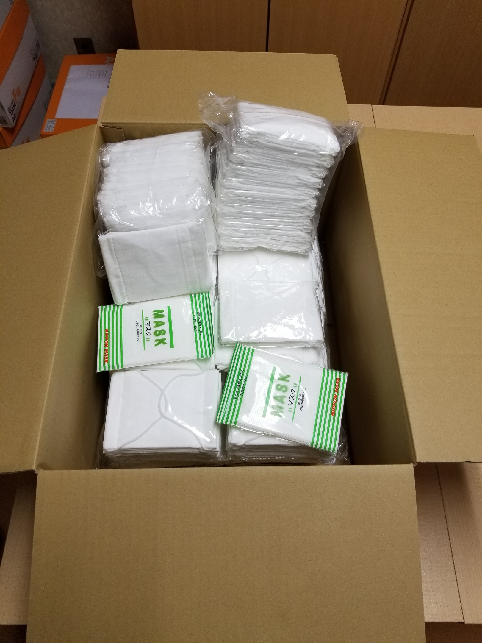 今回、いただいたマスクは大人用サイズで、配布枚数は要介護の利用者様と職員用です。