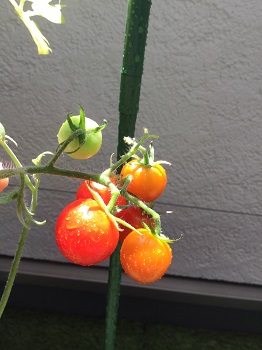 ベランダで育てているトマトが赤くなり初収穫を行いました!!