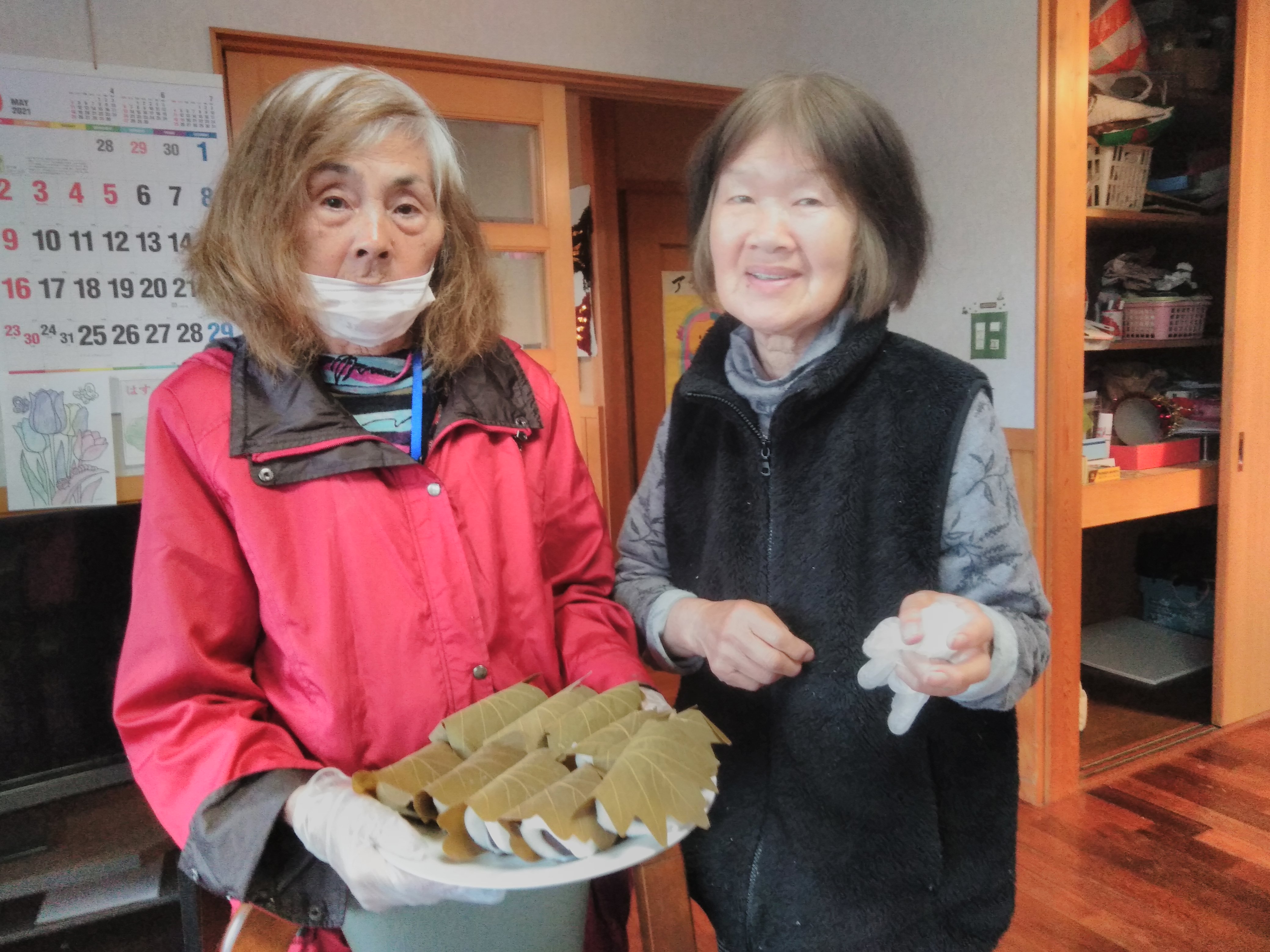 昼食は『かぶとの春巻き』、おやつは定番『柏餅』を作りました(^^♪