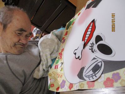 昔懐かしい福笑いを行いました。思うようなお顔は出来たでしょうか。