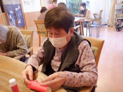 一生懸命に取り組んで、目を描き込みひもを付ければ完成!