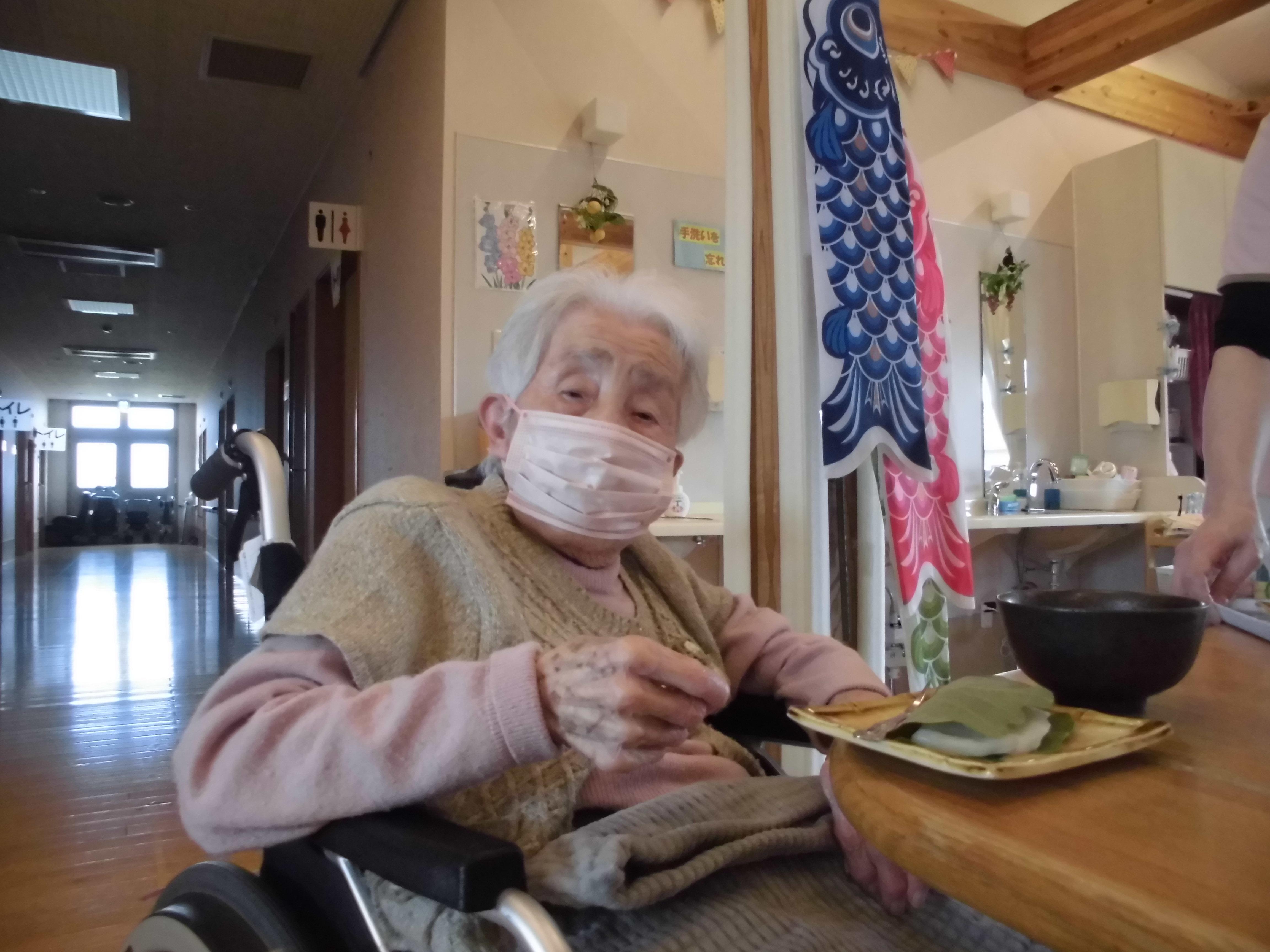 今回は『端午の節句』にちなんで、おやつでかしわ餅と抹茶を提供しました。