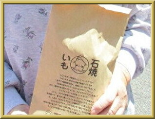 お店の方が 焼いもの 帽子を かぶせて くれました。