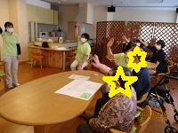 歌の体操や頭の体操をしました。その後に、お好きなお菓子を2個選んでもらい飲みながら歓談しました。