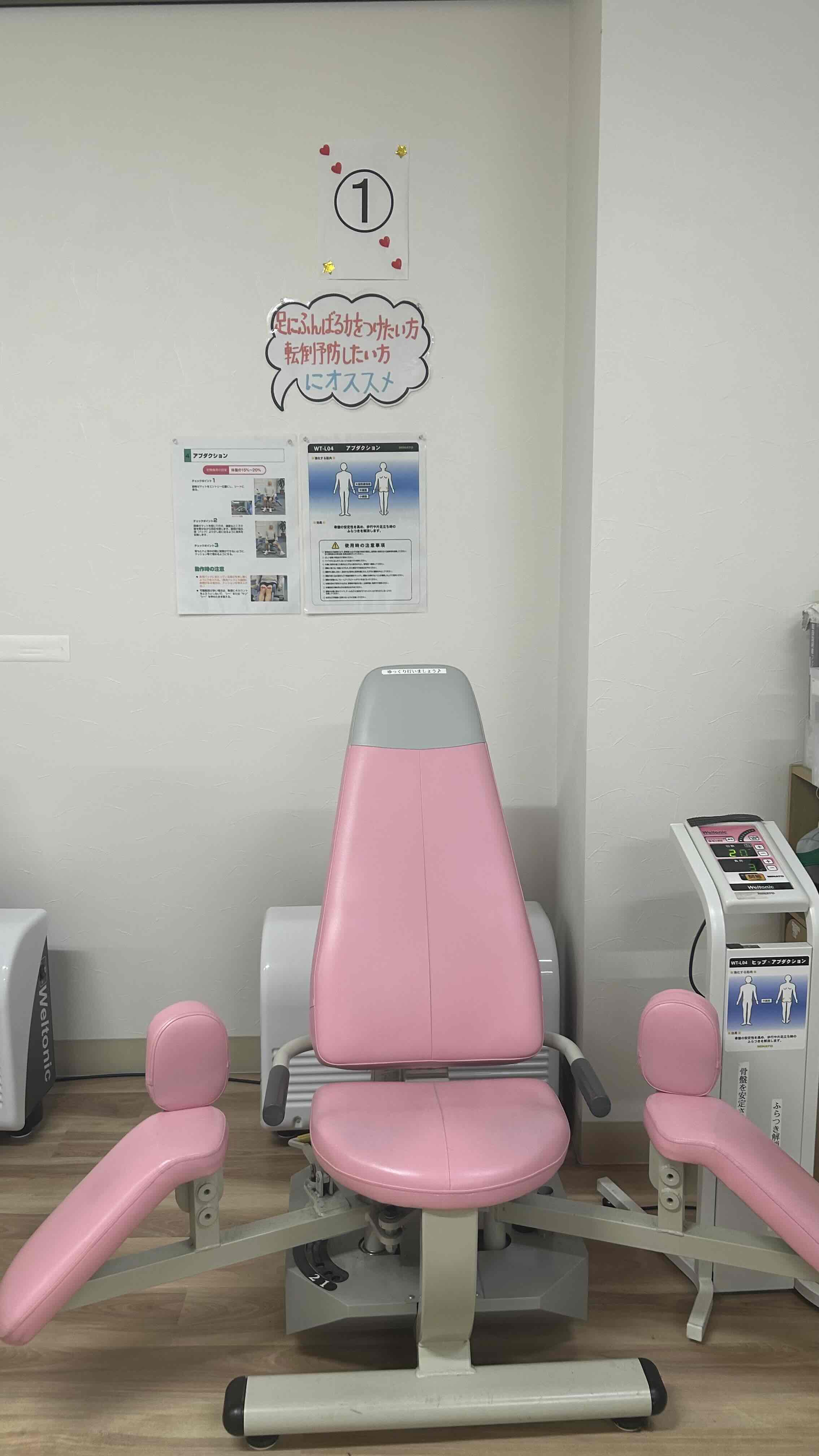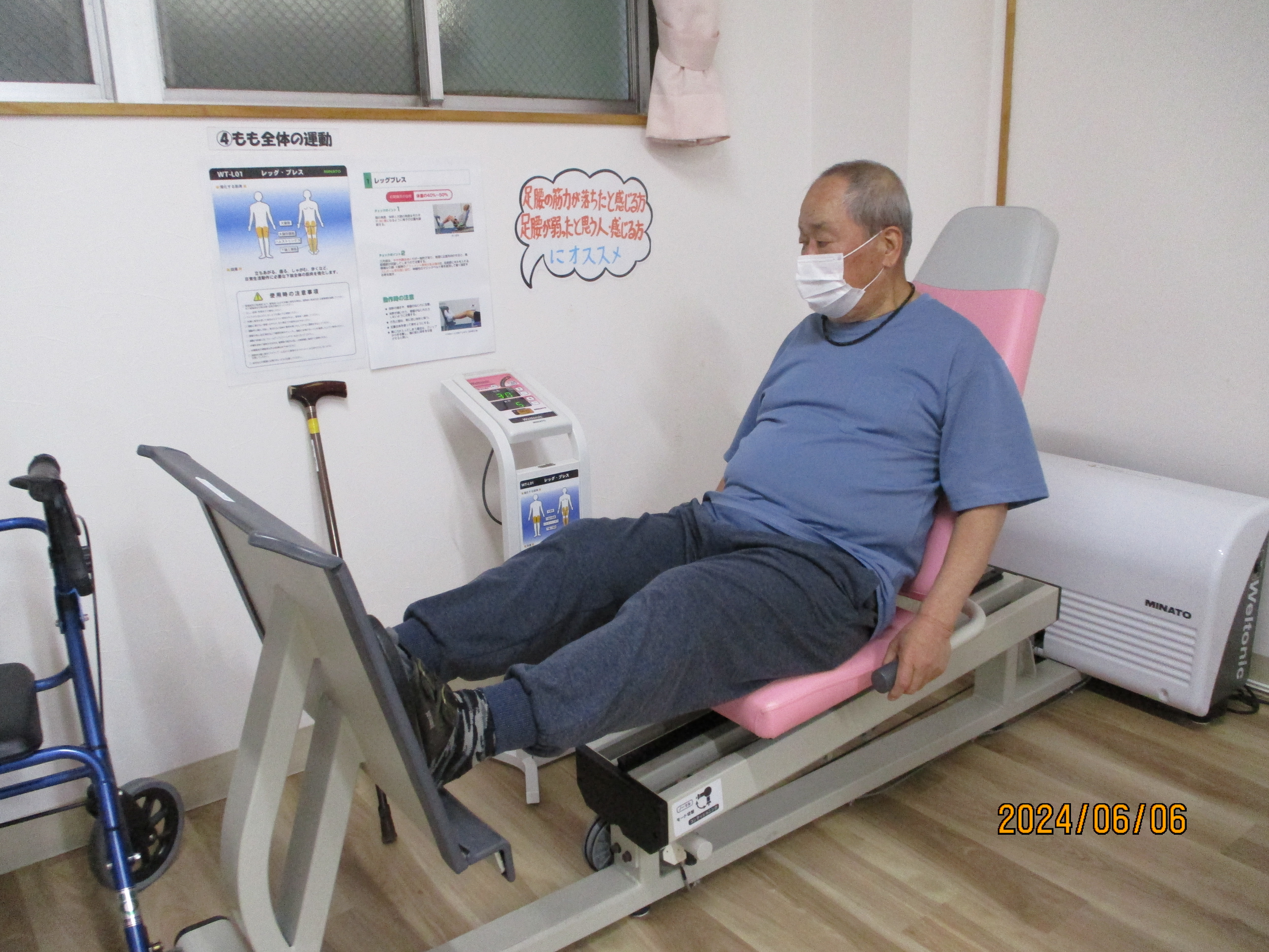 おおえほんまちでは、利用者様の筋力維持のために5つのマシーンがおいてあります。