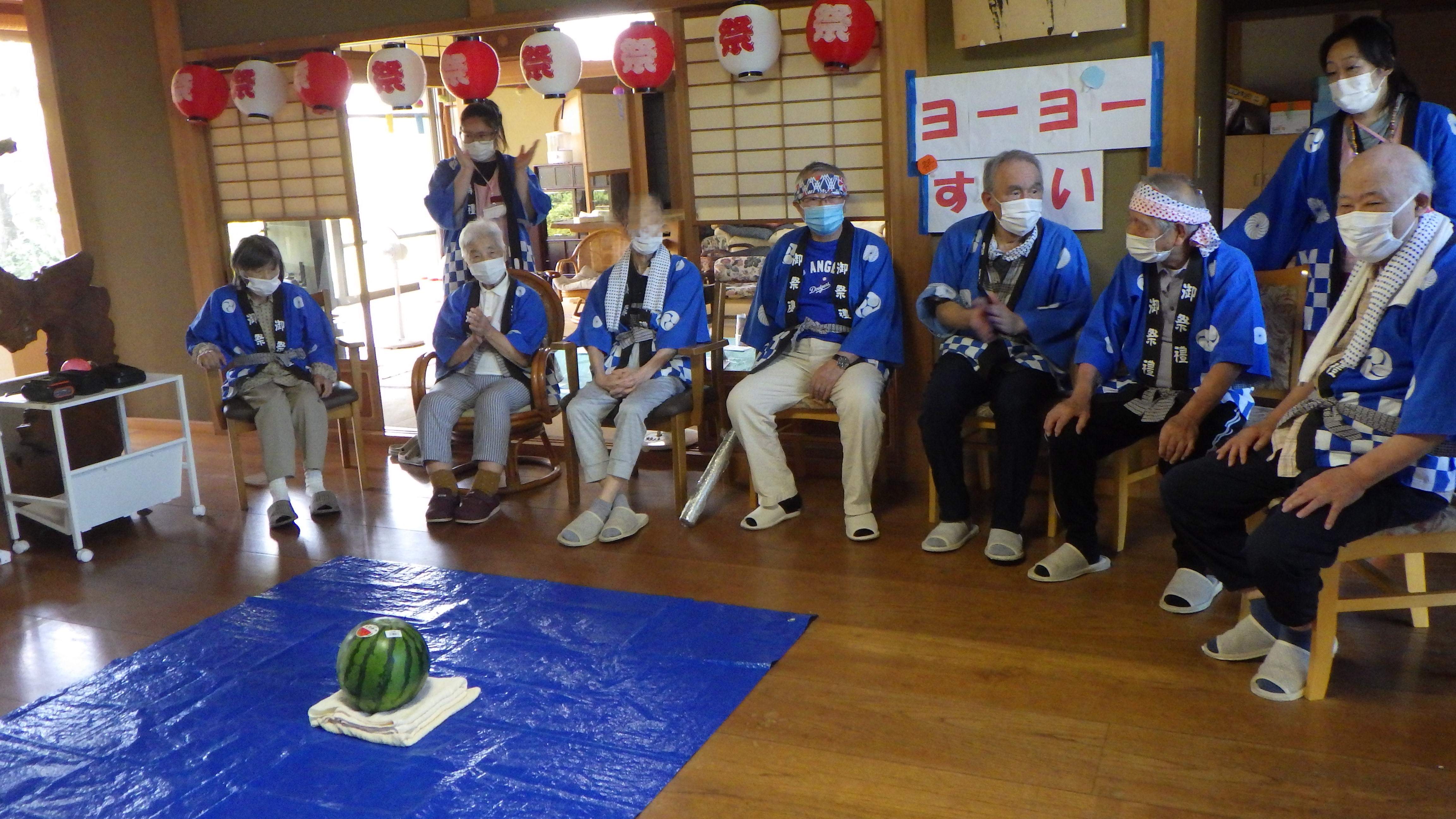 夏祭りの日は朝から『はっぴとハチマキ』をつけて準備万端です。