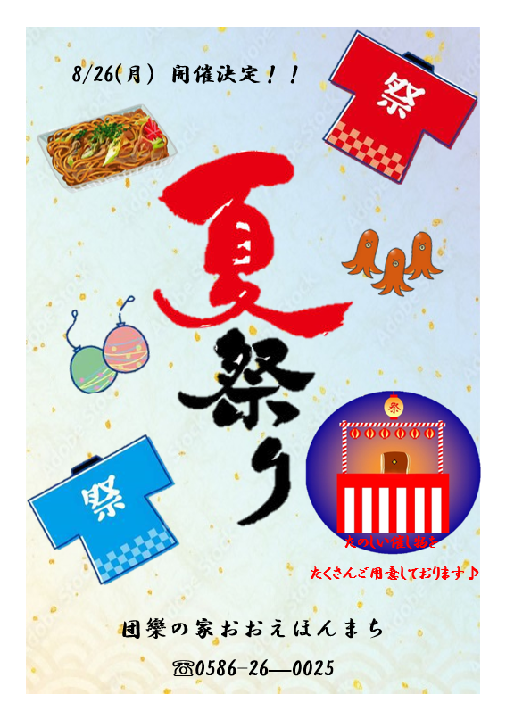 8/26(月)に”おおえほんまち夏祭り”を開催いたします(=゜ω゜)ノ
