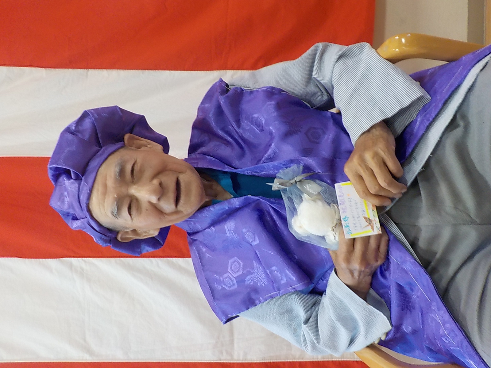 他の方にもちゃんちゃんこ着て頂き、メッセージカードとハンカチをお渡しさせて頂きました(`・ω・´)