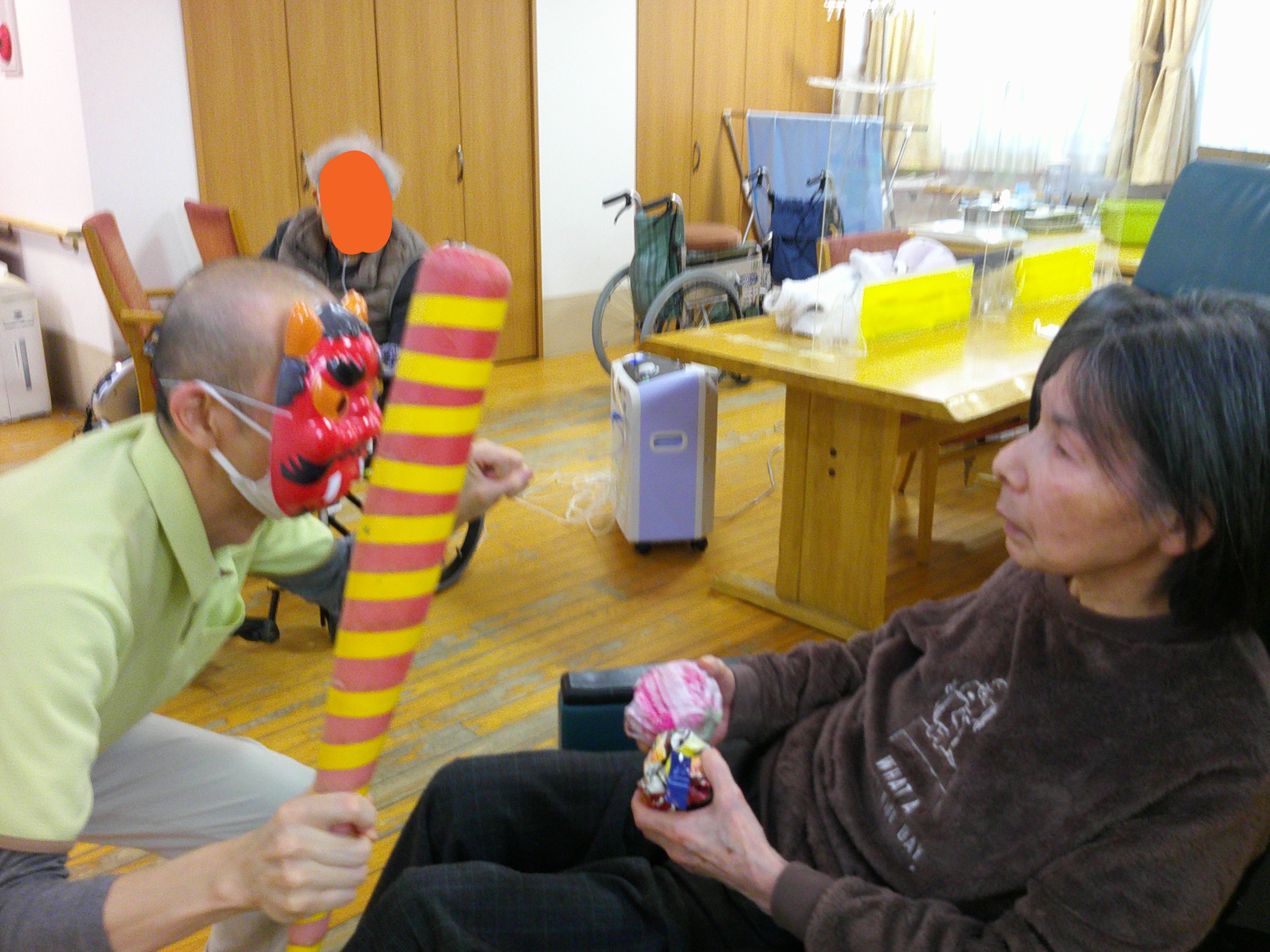 ふじしまでは節分の2択クイズ、恵方巻き作り、豆まきを行いました。