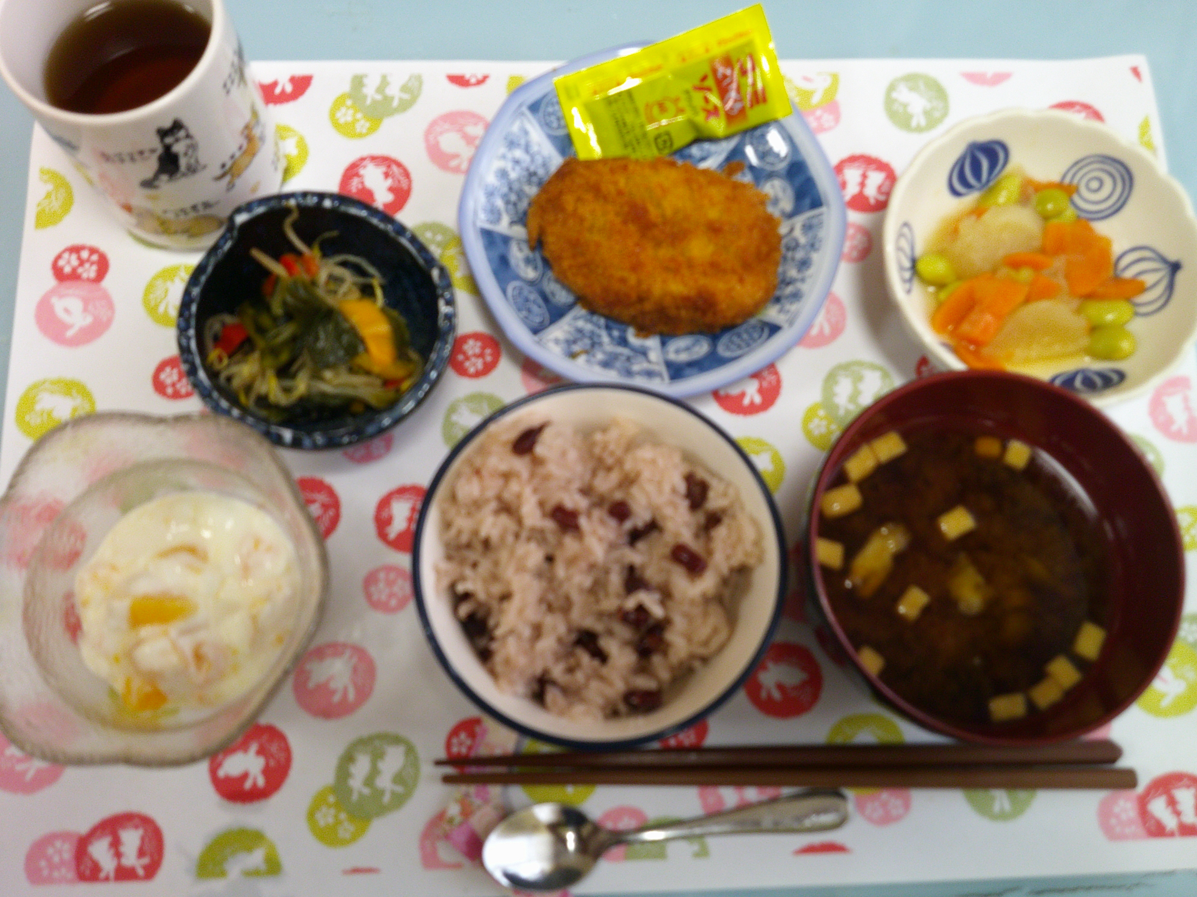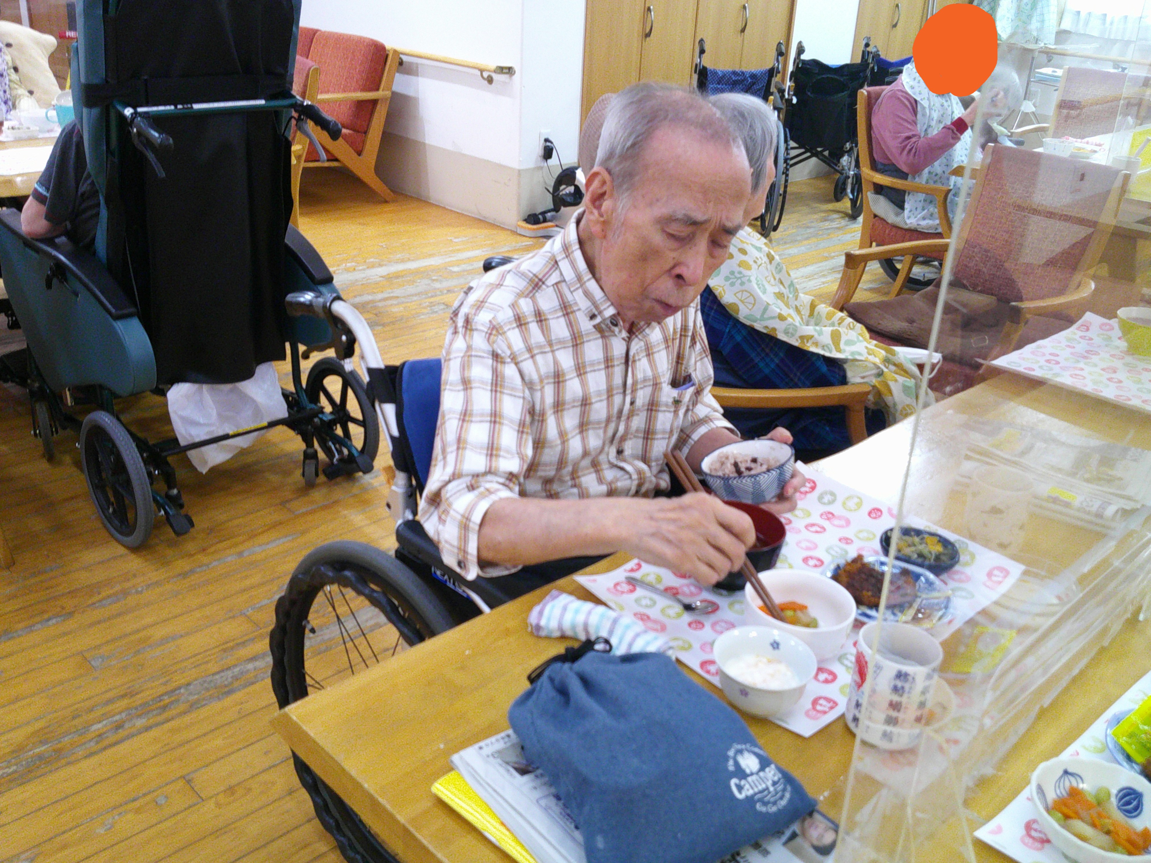 この日の昼食は赤飯♪豪華ですね。