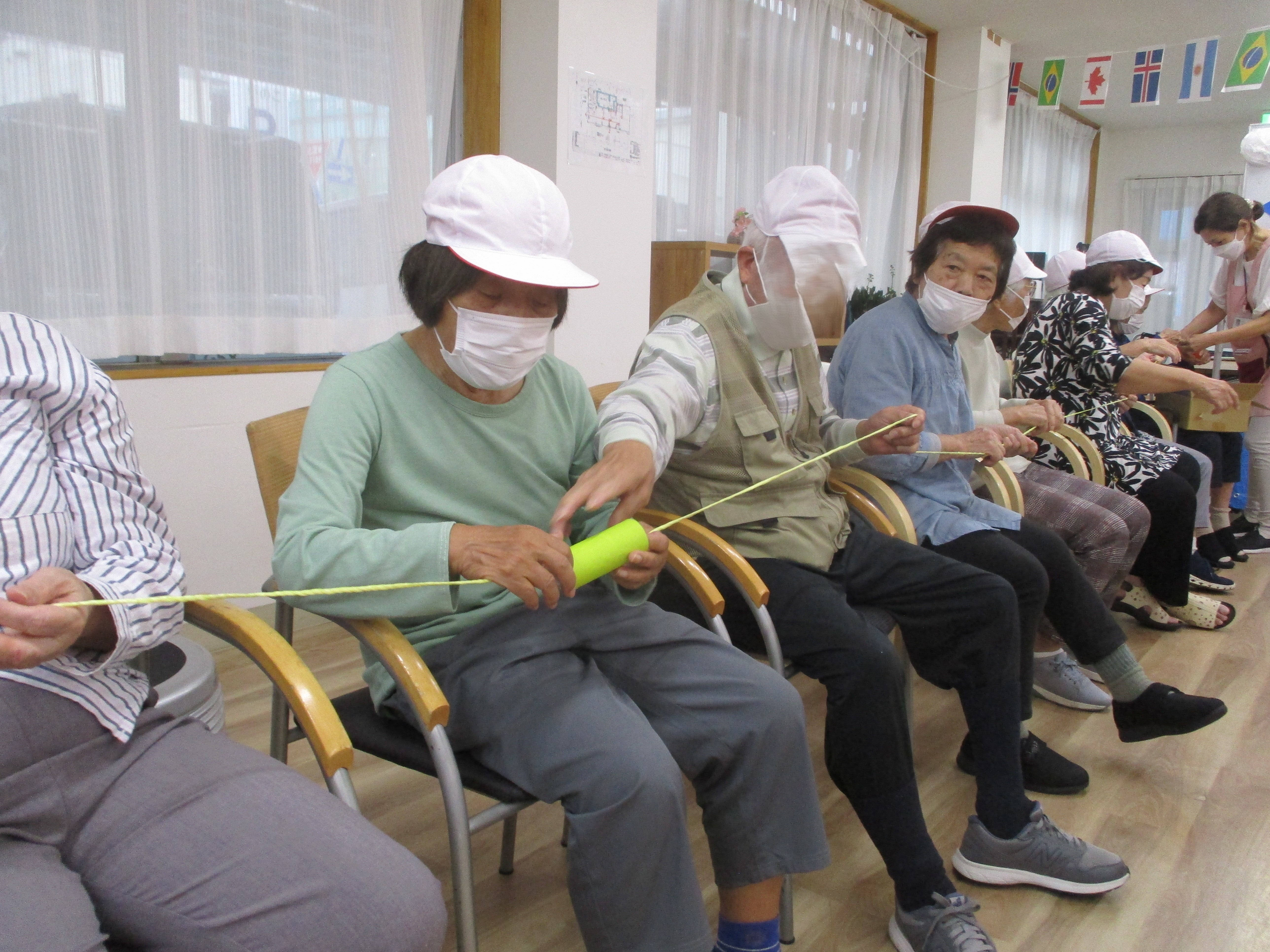 トイレットペーパーの申をひもで通していって多く通せた方が勝ち!