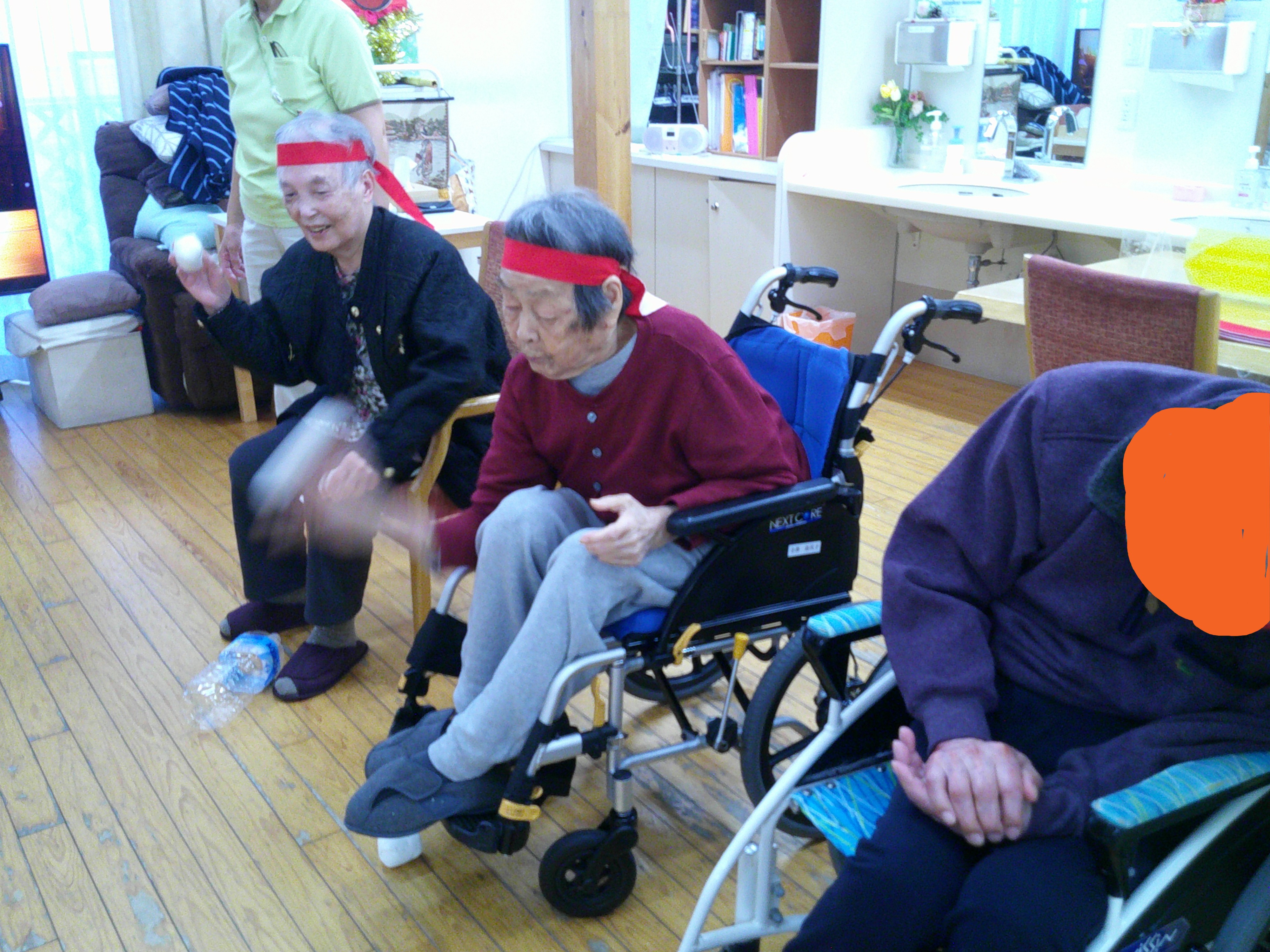ハチマキを巻いて気合十分。白組と紅組で競い合います!