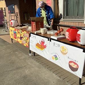屋台としては、たこ焼き、フランクフルト、みたらし団子、きゅうりとなすの浅漬け、栗ご飯、豚汁、フルーツポンチなどを準備しました!!