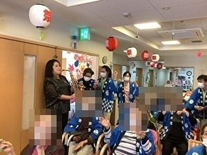 初めはサックス演奏から始まります!そしてマツケンサンバに合わせたダンスを皆で踊りました!!