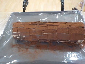 貼り合わせたチョコが木の幹に見えませんか?そこに雪に見立てたパウダーをかけて完成です(*^^)v