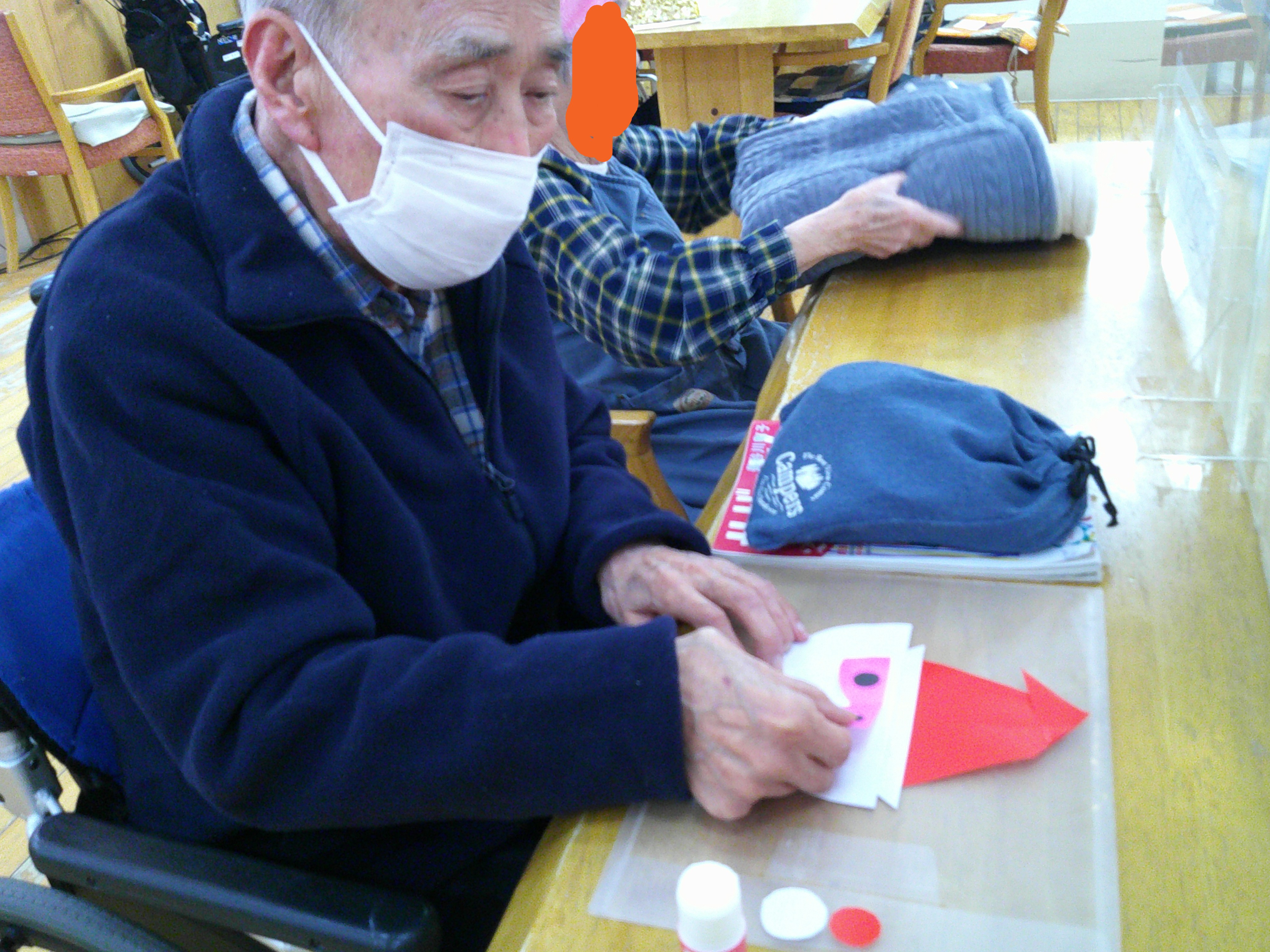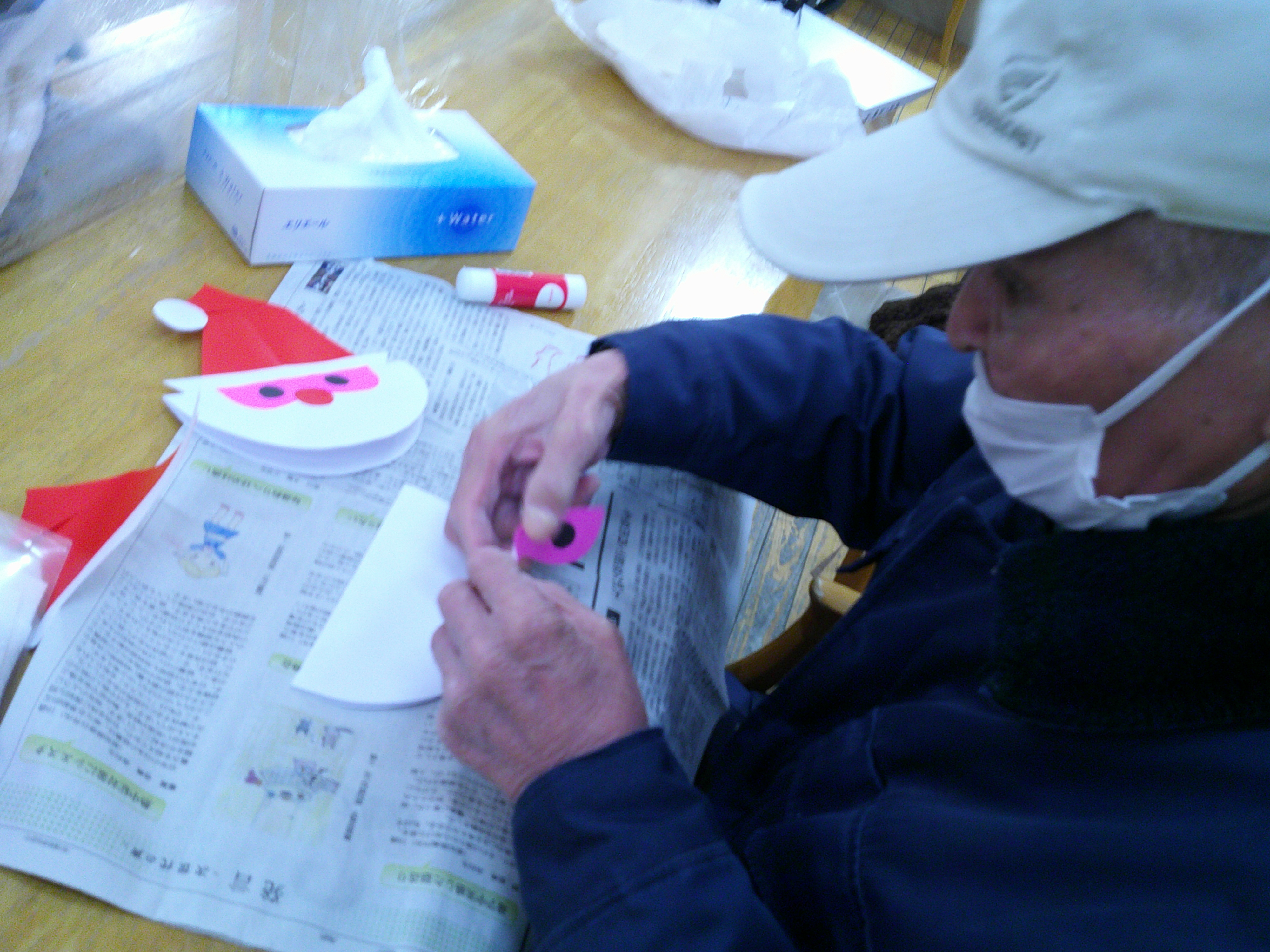 続いて、色紙を使ってサンタさんを作りました。
