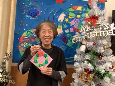 折り紙で、クリスマスリースも作りました。