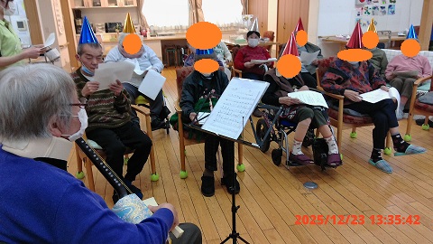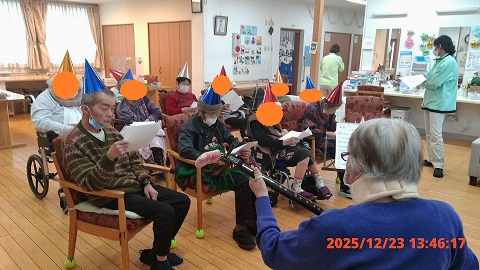 午後からは、利用者様による三味線演奏に合わせ、皆様と一緒に唄を歌い声を出しました。