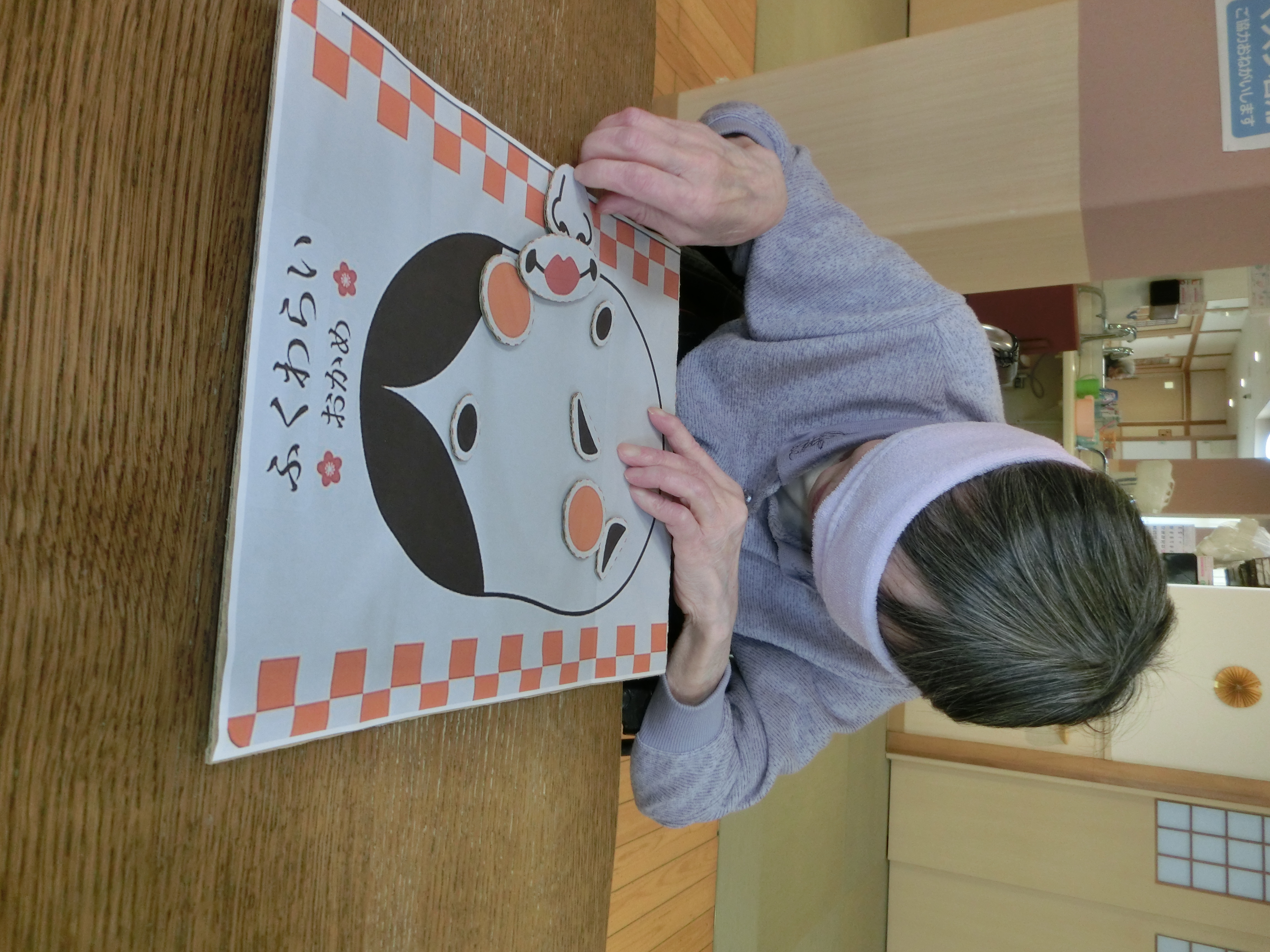 聞きながら完成した福笑いの顔を見て、笑顔が見られました。