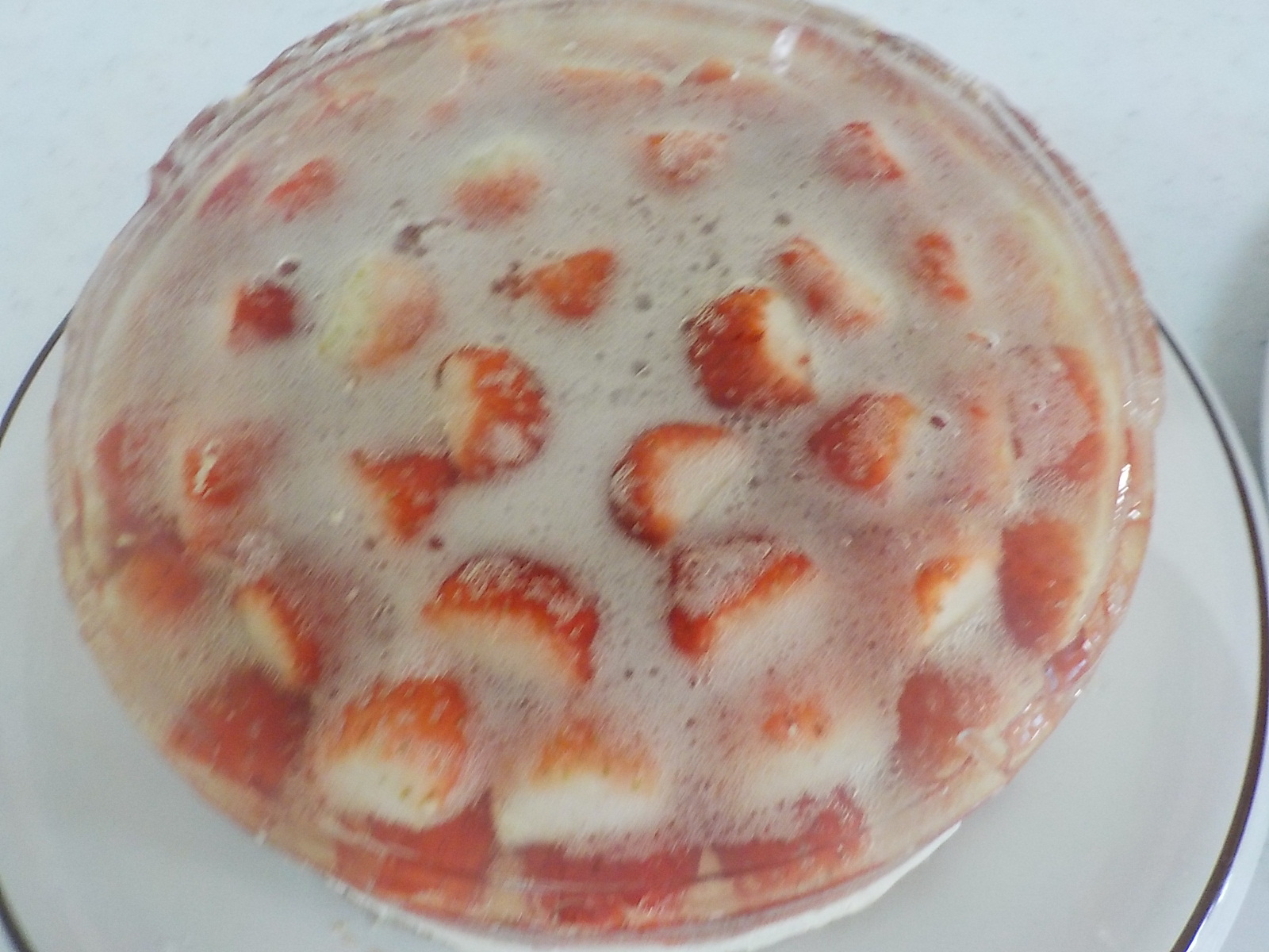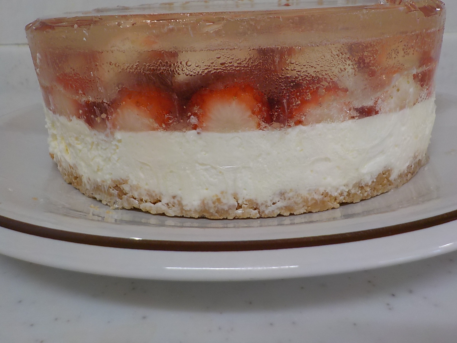 ケーキはイチゴのレアチーズケーキです(`・ω・´)