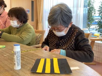紐の部分は毛糸で三つ編みを作りました。男性の方が「初めて三つ編みなんかしたよ」と楽しそうに話してくれました。