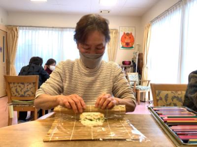 お昼ご飯は「自分のは自分で巻こう!」〈恵方巻〉を作りました。