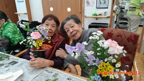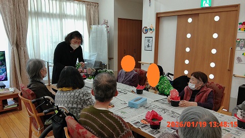 今年も大脇先生に来設していただき、来月の節分をモチーフにしたフラワーアレンジメントを行いました。
