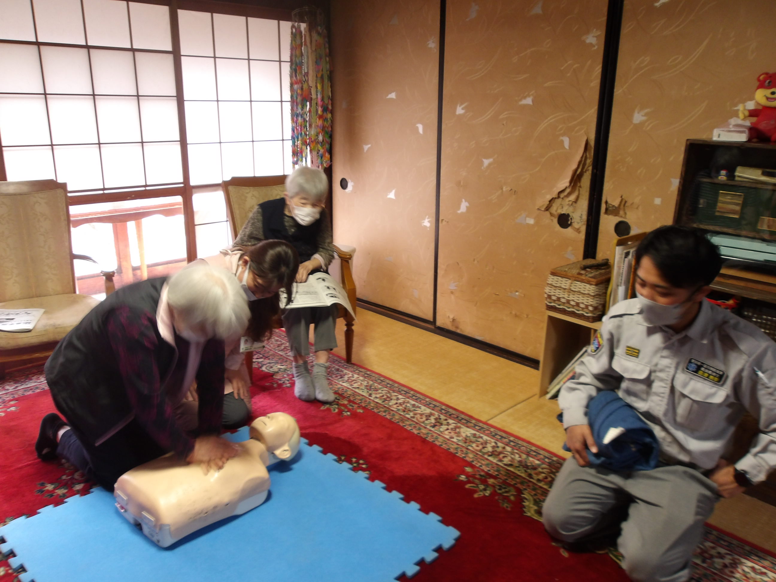 消防署の方を講師に招き、職員だけでなく利用者様も心肺蘇生法とAEDの使用方法を学びました!(^^)!