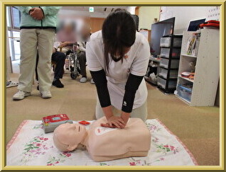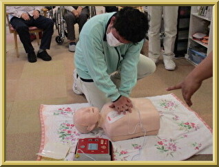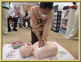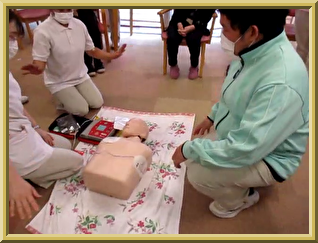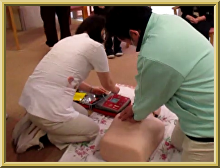 AEDを はじめて 操作する 職員も いました。