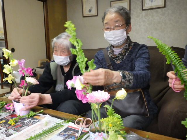 先日、団欒の家はぎわらでは春のフラワーアレンジメント教室を開催しました♪