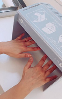 手洗いチェックは、まず専用のクリームを手に塗り、手を洗います。