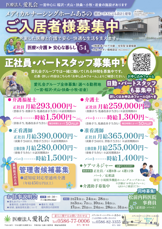 愛礼会グループで一緒に働く仲間を募集しています。